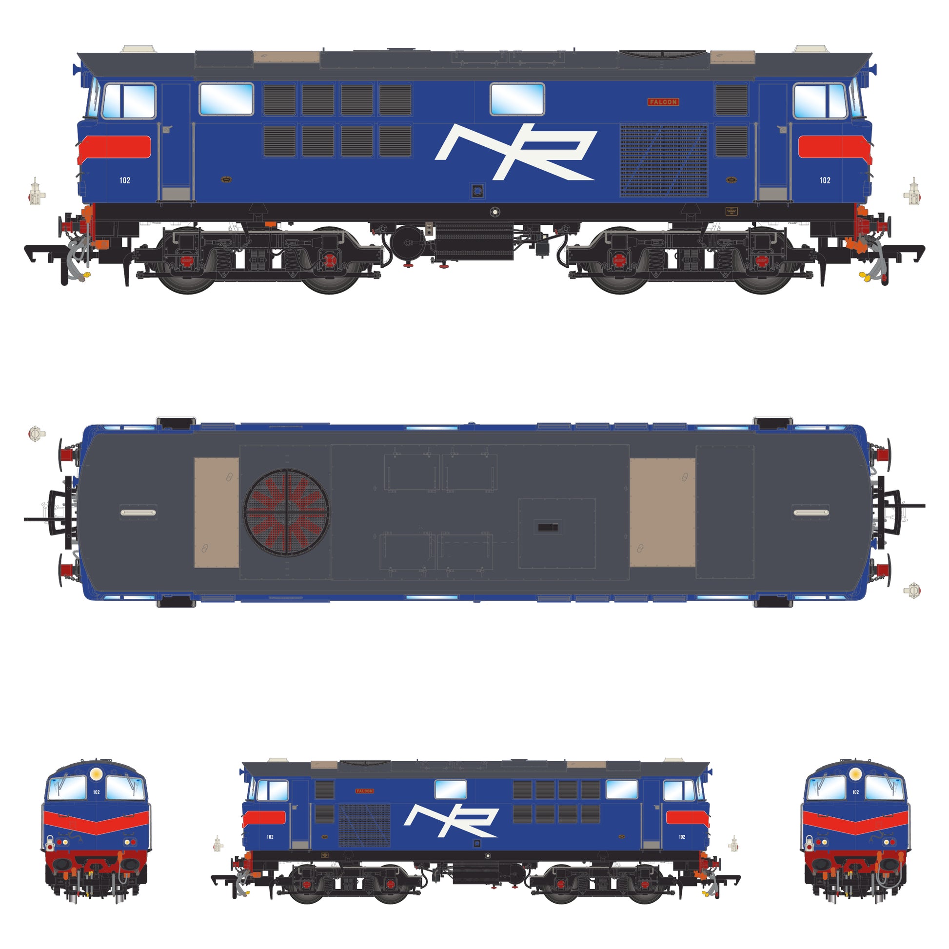 102 NIR Gorm 'Falcon', le Chevrons Dearg