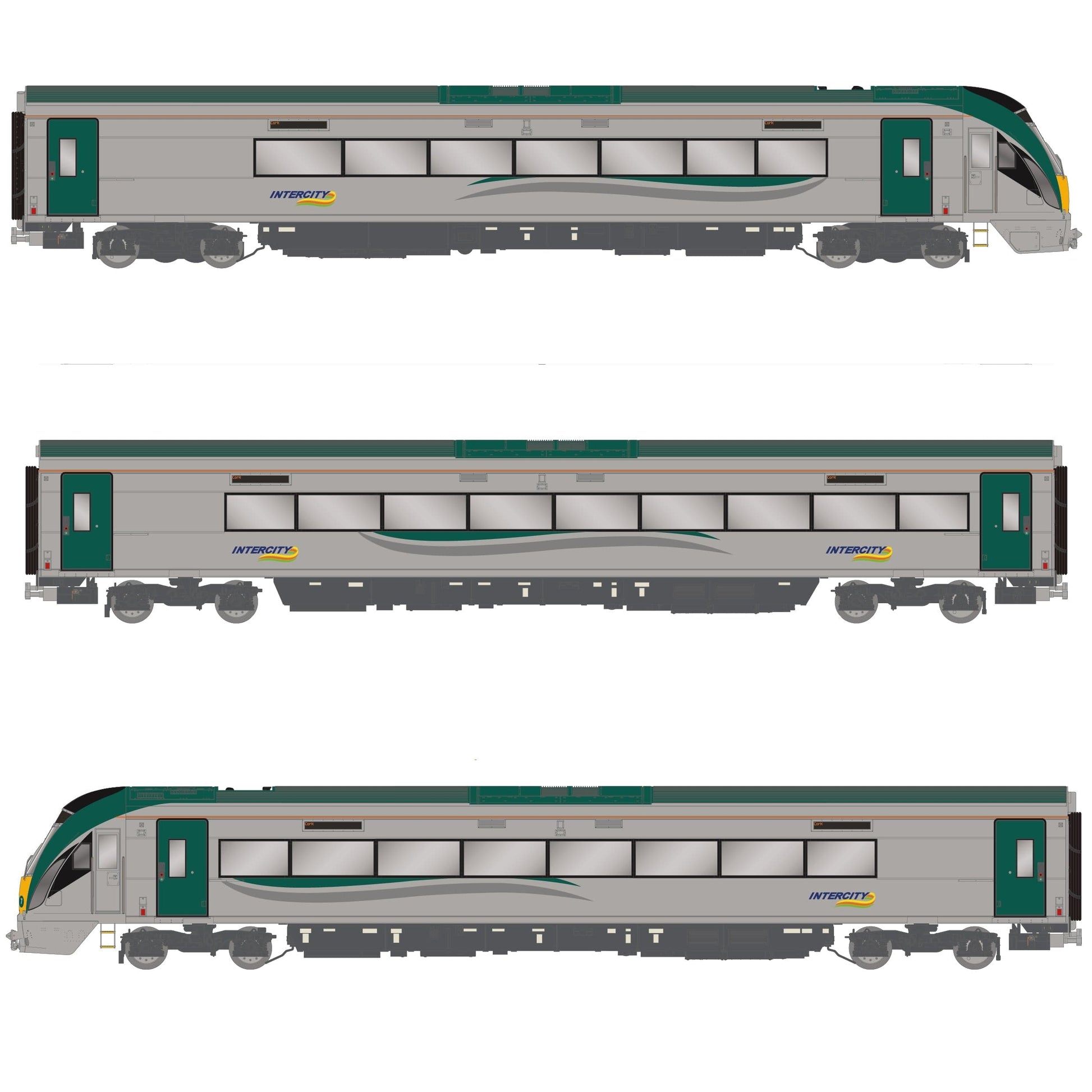 Aicme IE 22000 'ICR' - 3-charr sa bhunsruthán brandáilte 'Intercity', le marcóir tacair 'liathróid Bowling'